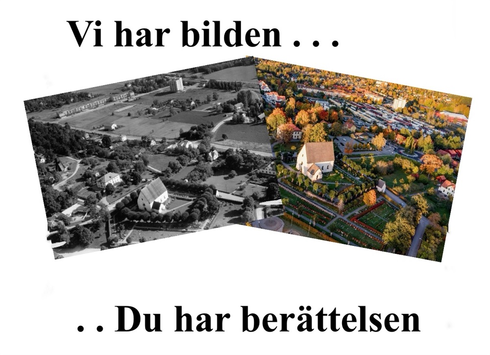 Vi tittar på bilder och pratar om Täby Kyrkby
