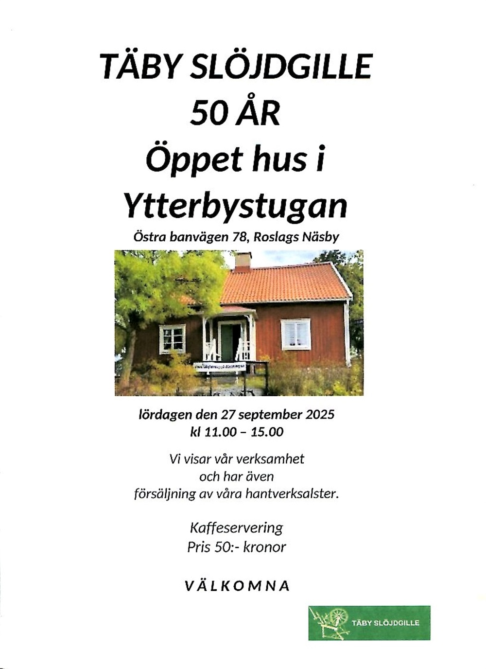 - Stödja Täby Hembygdsförening.Varje medlem i Slöjdgillet måste också vara medlem i Täby Hembygdsförening.